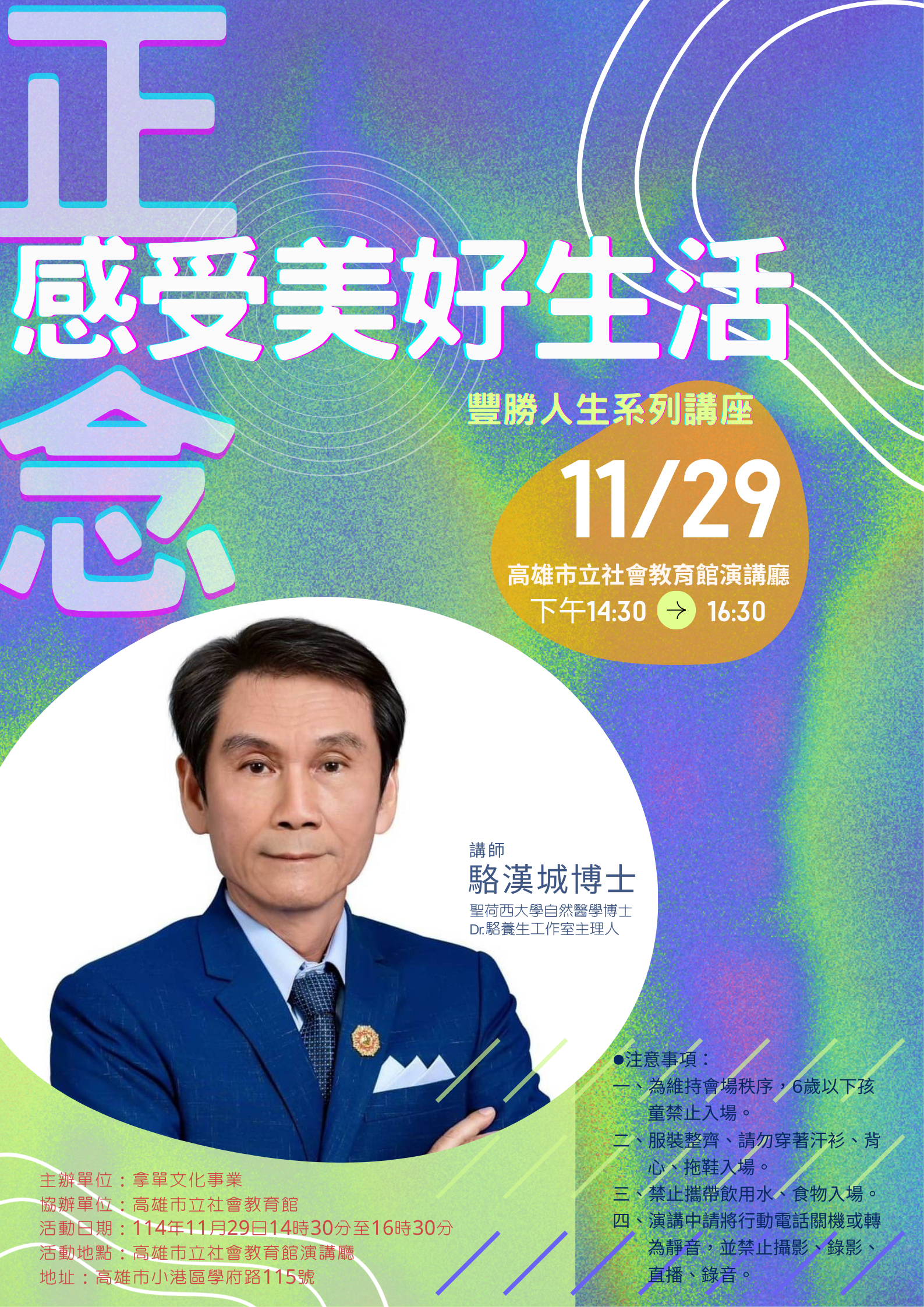活動名稱:豐勝人生系列講座:正念感受美好生活