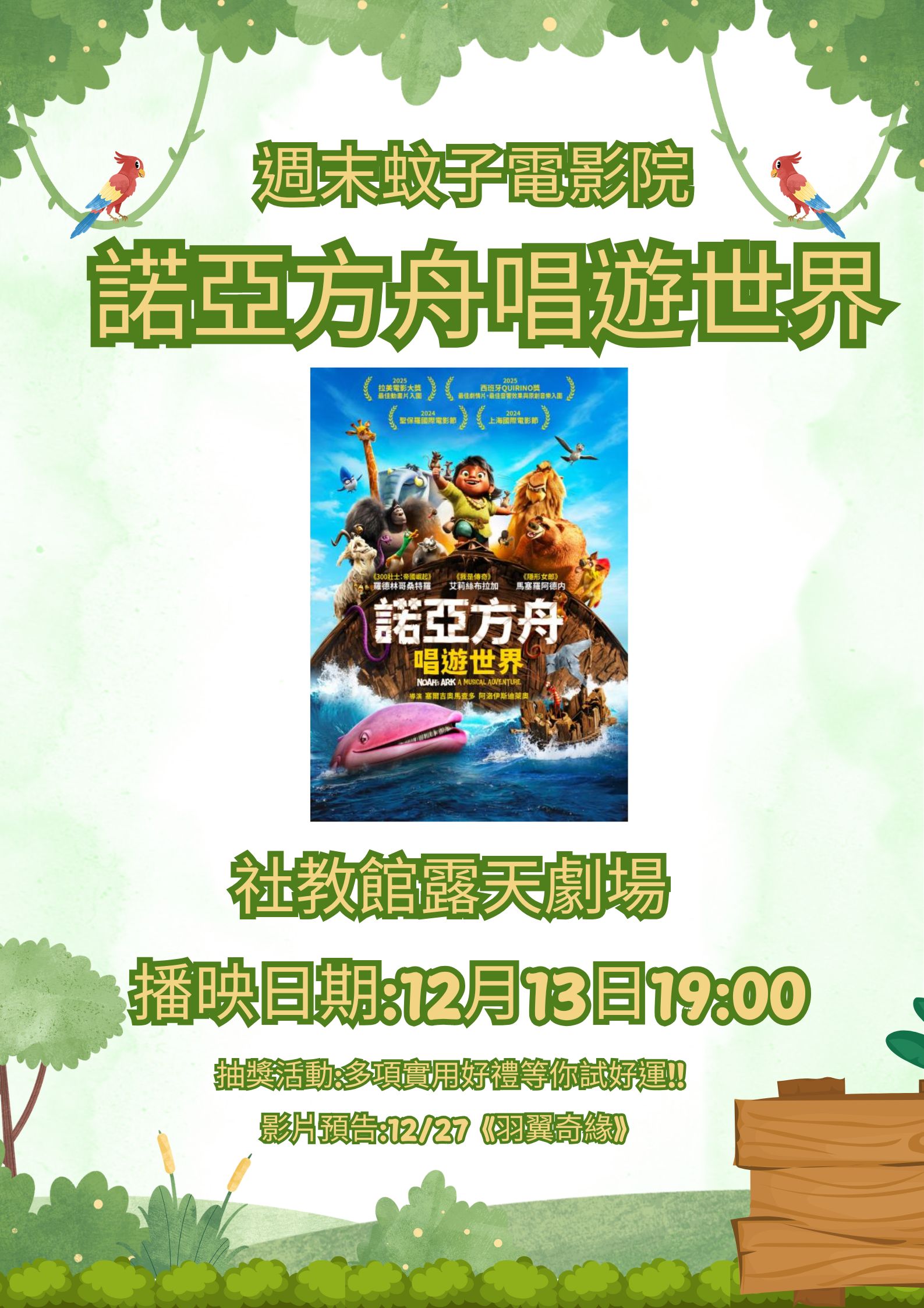 114年「週末蚊子電影院」每場都有抽獎活動,獎品有餐具組、2入玻璃保鮮盒、手提小胖叮保溫瓶、有機棉毛巾禮盒及循環扇等多項實用好禮,每場抽出5位幸運觀眾,摸彩券將於電影放映前發放,逾時不補發。(獎品由盛餘股份有限公司贊助)