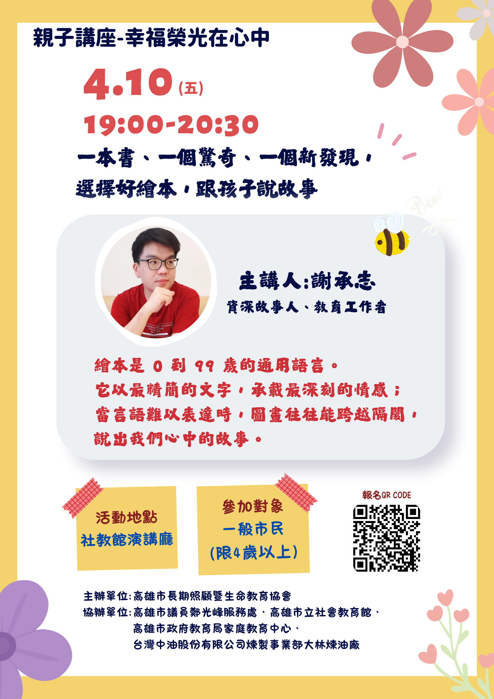 講 題:一本書、一個驚奇、一個新發現,選擇好繪本,跟孩子說故事