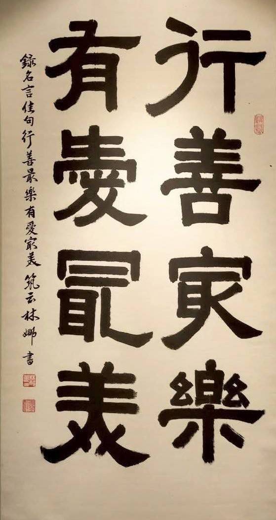 書法上的藝術乃是透過筆、墨在宣紙上運氣揮毫,在黃壽全老師及蔡金貴老師的指導下分別對楷、行草書不斷反覆練習,從架構、粗細、大小、角度、圓滑等細膩精準臨帖到默記而熟練,享受書法藝術之美,亦可運氣靜心有益身心靈。