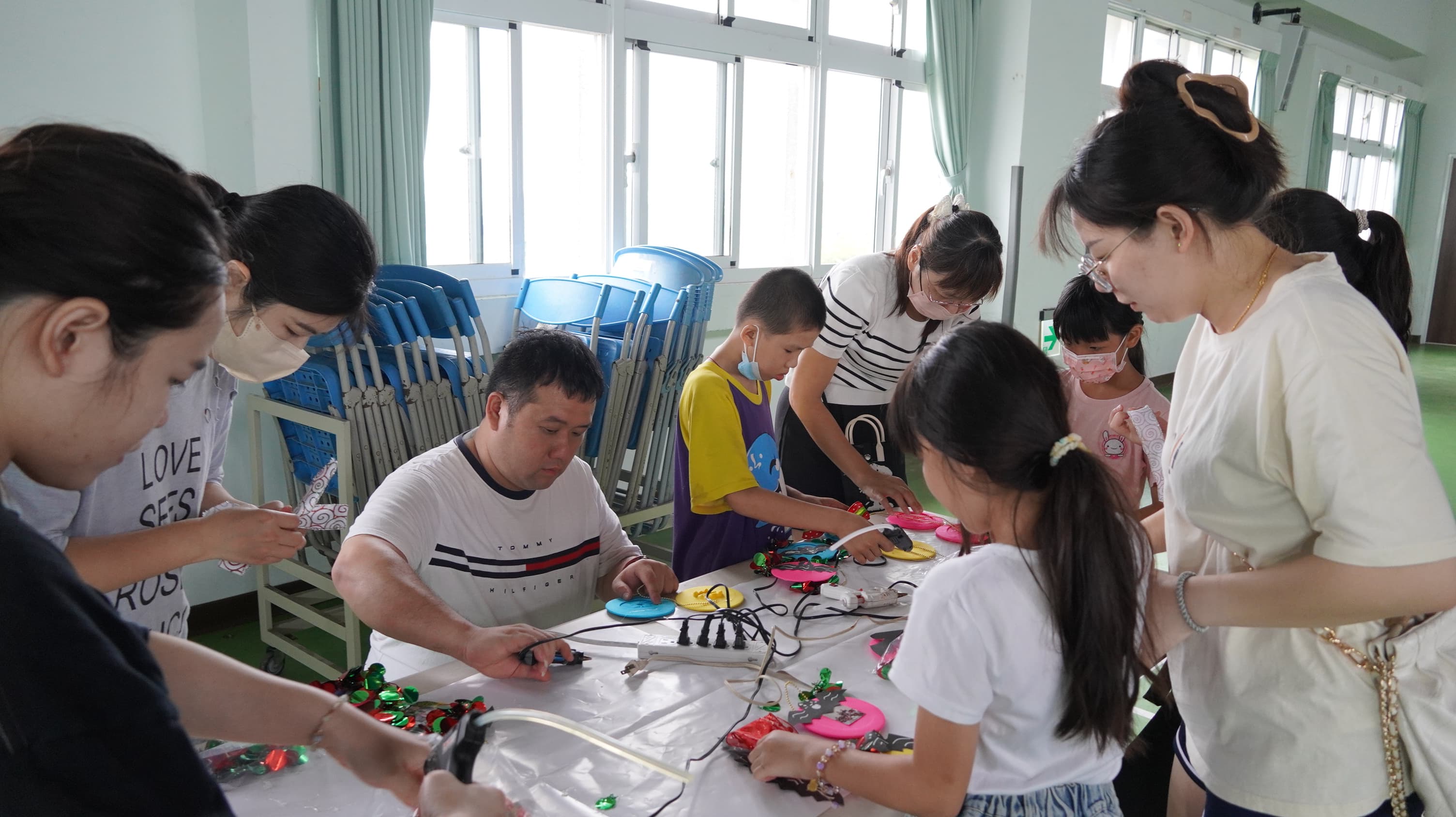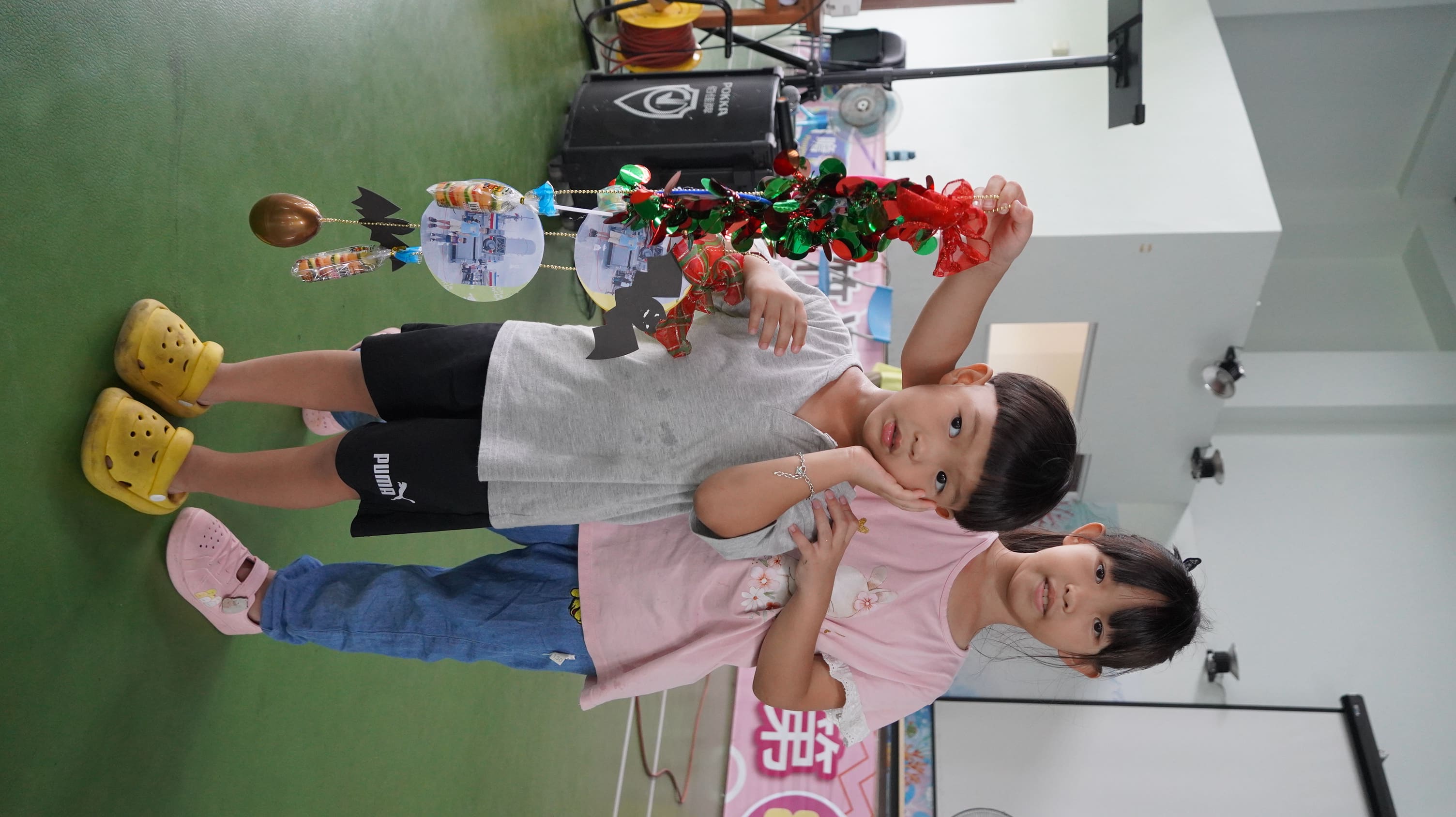 竹滬國小近年積極推動環境教育與在地特色課程,透過此次活動融入「資源再利用」理念,讓回收光碟片搖身一變成為創意相框,傳達永續與環保精神。來自就讀竹滬國小三年忠班的楊宇翔今日和媽媽參加親子活動,他在校是個活潑又喜愛唱歌的學生,宇翔開心地說介紹:「這是我自己做的相框,上面有我畫的蝙蝠,badehry是牠的名字呢。」;就讀橋頭區甲圍國小五年級的李珮蓉、三年級李晟煒姊弟剛好週末來訪,聽到有這個活動便隨同就讀竹滬國小五年孝班的胡妍音、二年忠班胡臣希表姊弟與會,活動中大家一起討論要怎麼設計蝙蝠、安排糖果位置、組裝相框,溫馨又熱鬧,珮蓉設計了貓咪蝙蝠、臣希的則是愛心蝙蝠、珮蓉則設計了骷髏頭蝙蝠,胡爸爸則分享:「感謝社教館舉辦親子活動,讓孩子們和表姊弟一起參加增進感情,成品可愛又應景。」而就讀竹滬附幼的吳烜輔,受訪時認真地說要展示萬聖節鬼臉,他說:「一串糖果我會留到萬聖節,但另外一串我回家想先吃掉。」