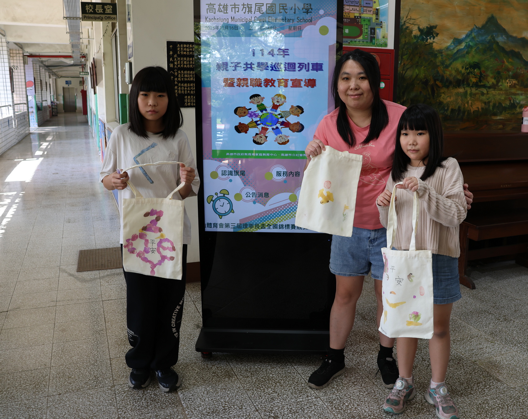高雄市立社會教育館於11月16日在本市旗山區旗尾國小舉辦「親子共學巡迴列車~花卉敲染創意手提袋」活動,教大小朋友們運用敲染在手提袋上印出繽紛圖案,讓原本平凡無奇的織布與植物結合成藝術精品,民眾報名相當踴躍,當日場面熱鬧滾滾!