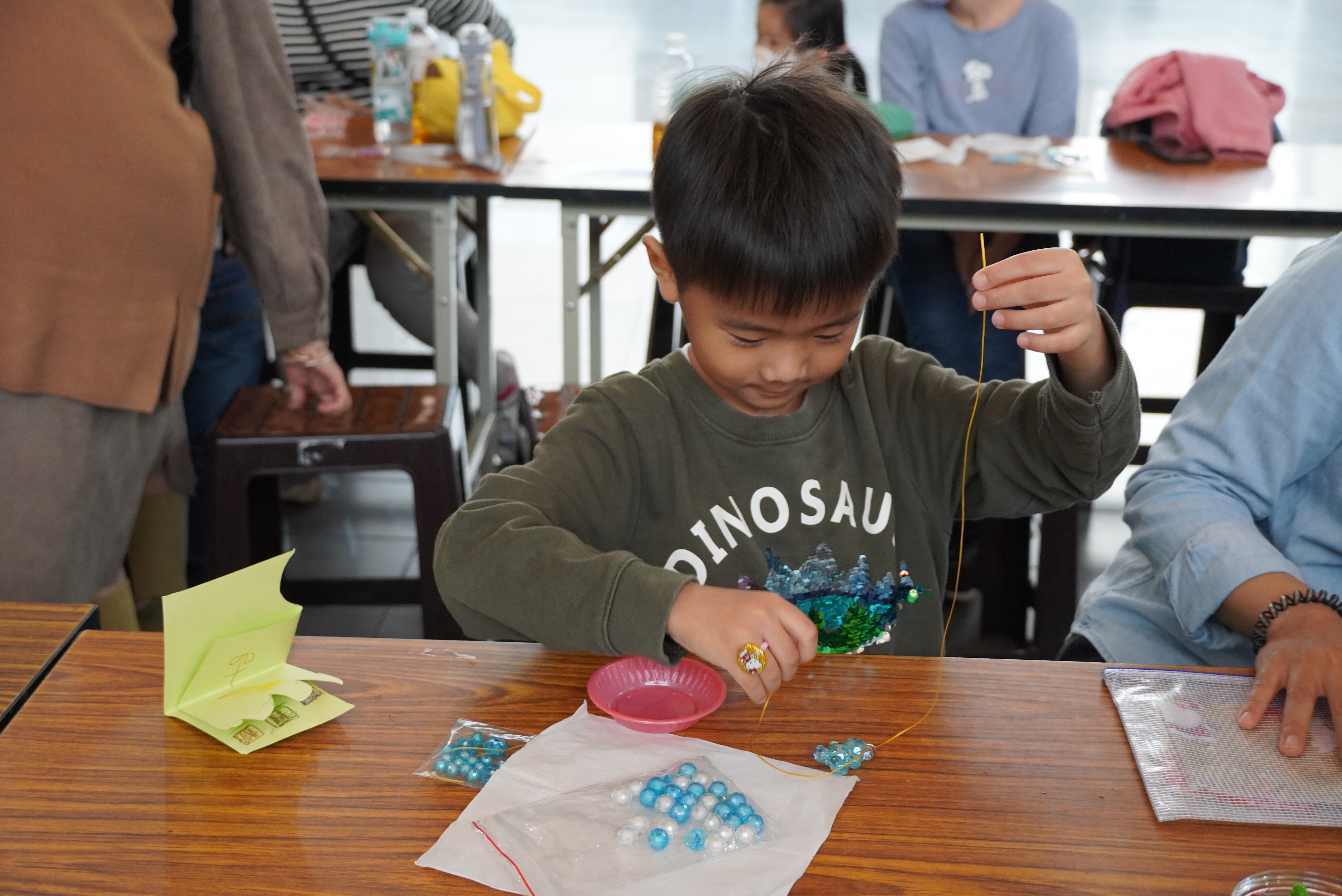 本活動運用有色壓克力水晶珠,白色壓克力水晶珠 ,五彩花朵珠,金珠,銅圈,韓國彈簧線條,五彩小花珠,金珠,壓克力水晶珠等創作而成,同時分享親子的樂趣,培養親子互動,發揮社會教育功能。 #小港社教站 #樊素瑜講師