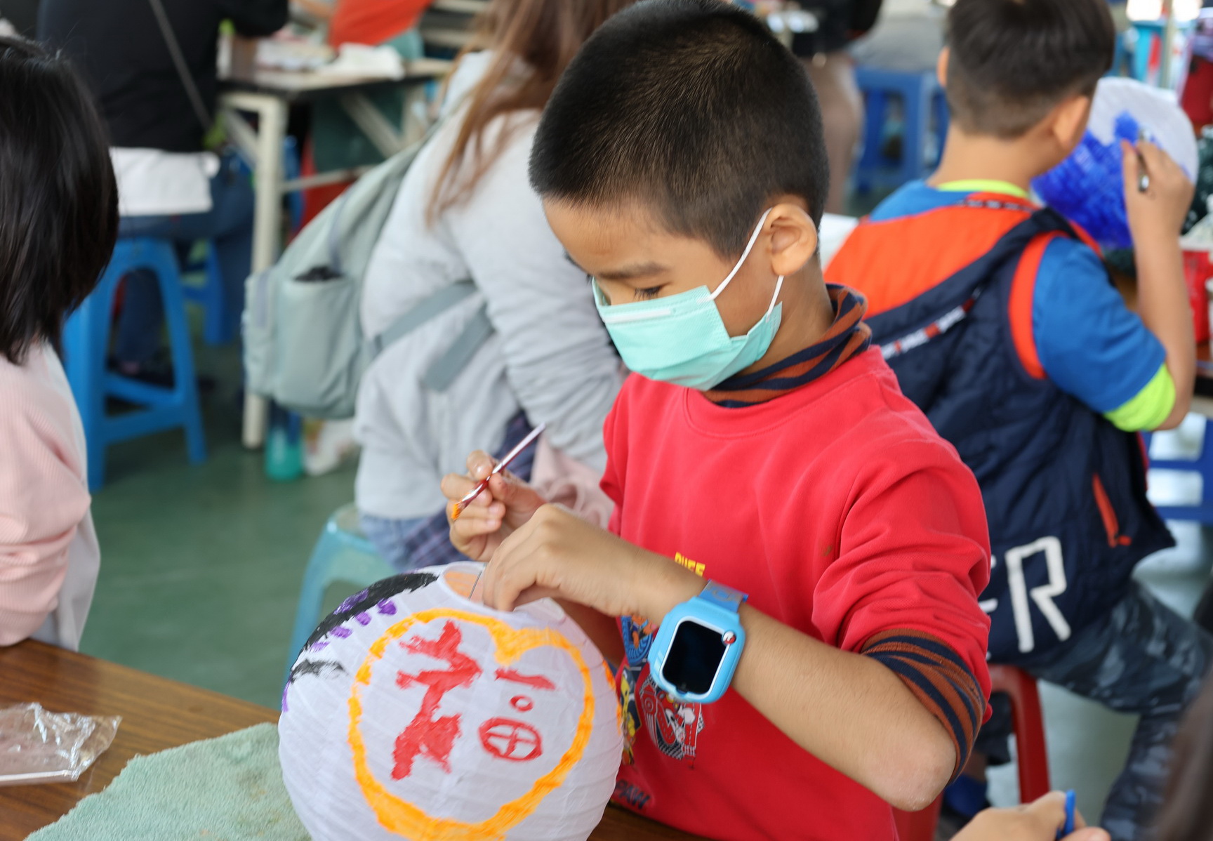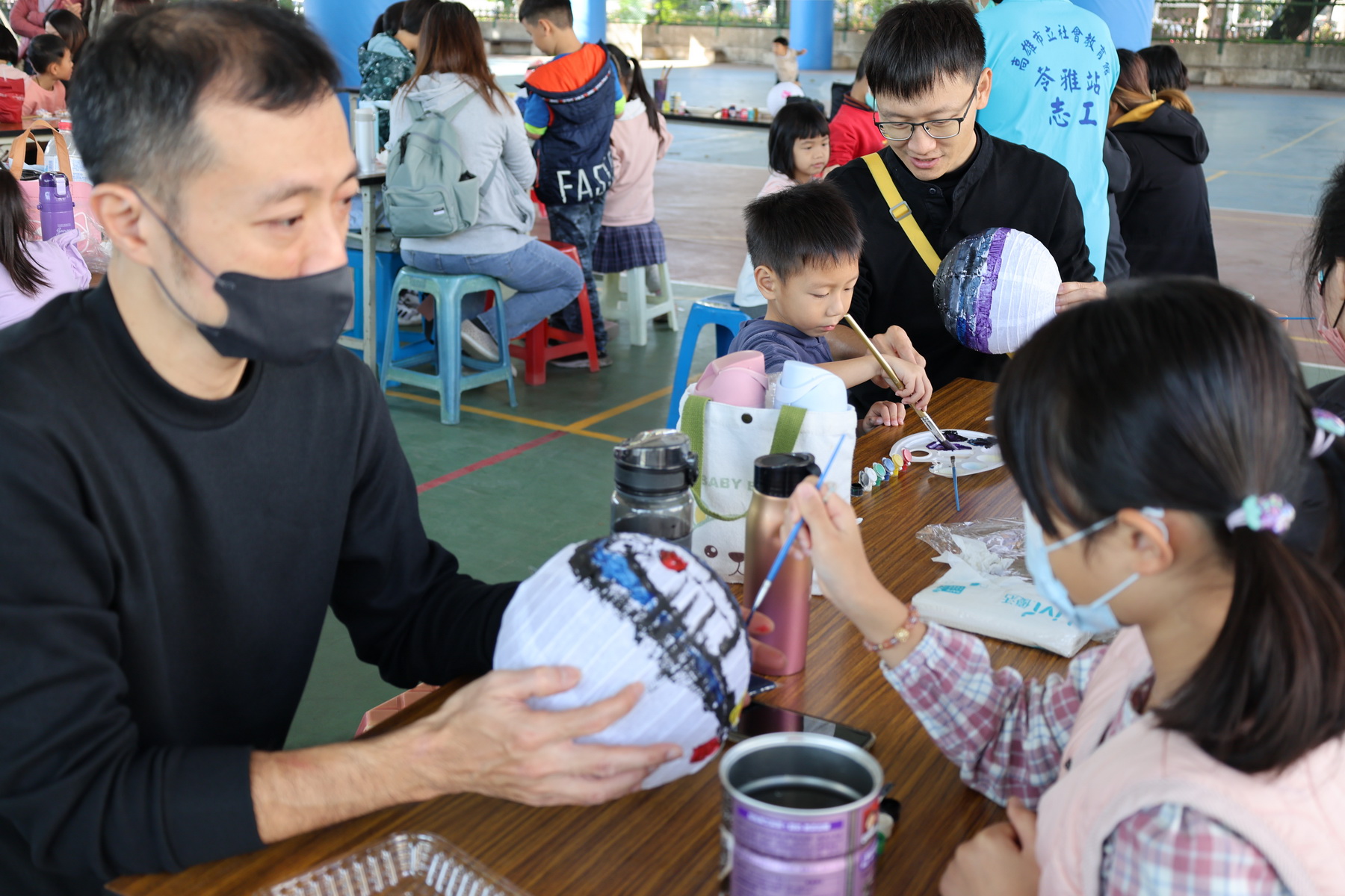 活動當日,苓雅區凱旋國小陳亮伃主任及社教館姜淑菁秘書亦蒞臨與親子同歡。小朋友陸續完成燈籠彩繪,露出燦爛笑容,家長也紛紛拿起手機記錄這開心的時刻,其中就讀陽明國小一年級的溫宥恩,一大早跟爸爸、妹妹前來參加活動,宥恩很開心地介紹其所畫的燈籠,他在燈籠上寫上大大的「春」、「福」兩字,並表示會想要把燈籠放在家中客廳;就讀凱旋國小一年級的林千曦跟著爸爸、媽媽與弟弟一同參加,千曦在燈籠畫上遊戲角色、星星及月亮,也謝謝爸爸、媽媽帶她和弟弟來參加活動。
