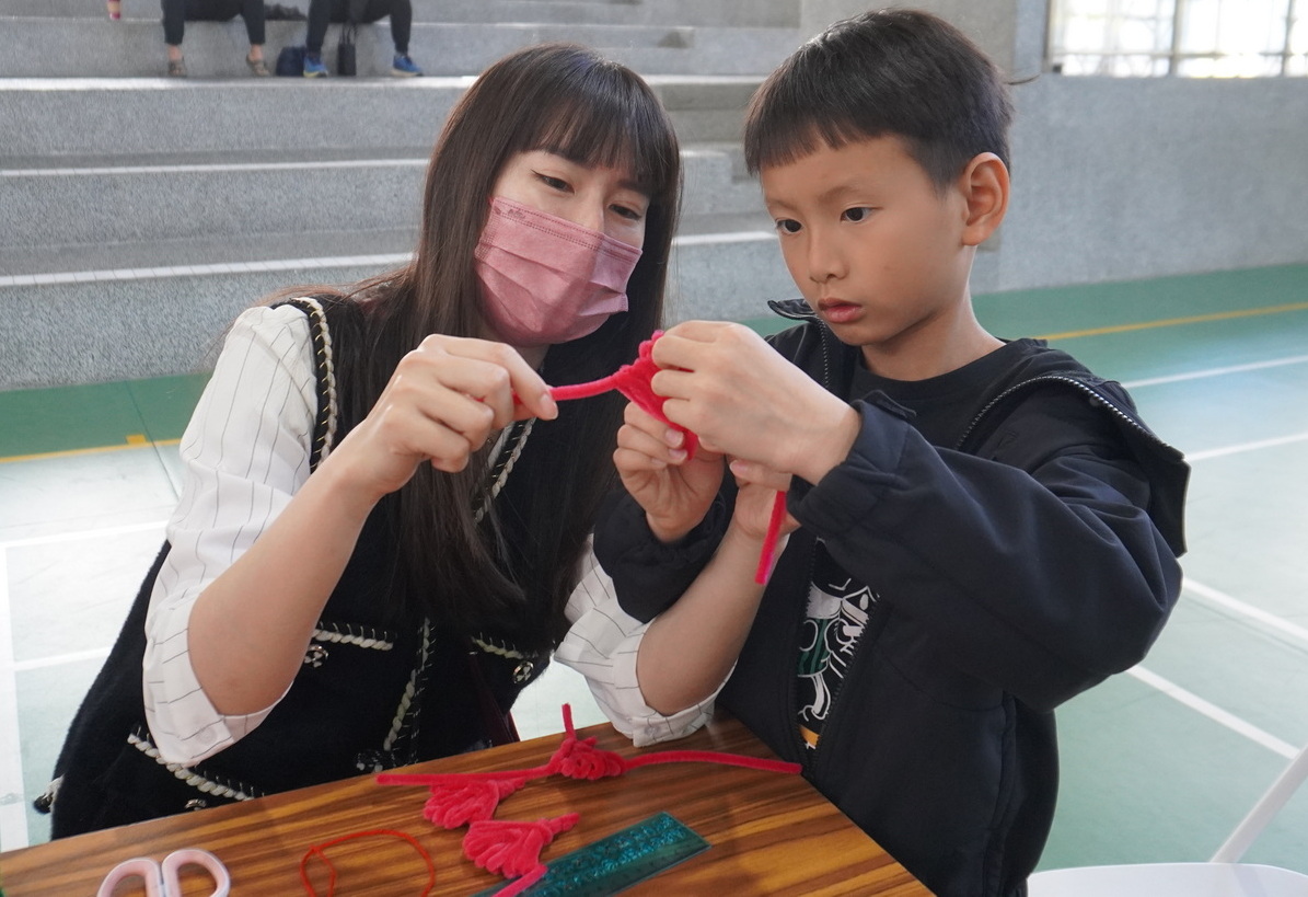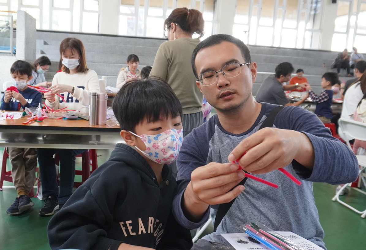 活動現場,大小朋友在老師與社教站志工伙伴的引導下,共同攜手製作獨一無二的年味作品,孩子們發揮創意裝飾毛根造型,挑選喜愛的花飾,家長則協助黏貼與固定,過程中笑聲不斷,氣氛溫馨熱絡,完成後的作品不僅可掛於家中門口或牆面,除了象徵花開富貴、圓滿豐收之意,也成為迎接新年的最佳應景裝飾。
