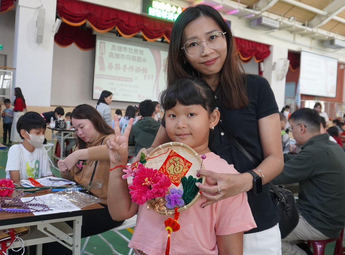 〔本報訊〕為迎接農曆新年的到來,營造濃厚年節氣氛,高雄市立社會教育館1月18日於三民區河堤國小舉辦「春節手作掛飾DIY」活動,吸引眾多親子家庭熱情參與,透過手作體驗,讓孩子在過程中認識傳統節慶文化,以促進親子互動,共度溫馨時光。