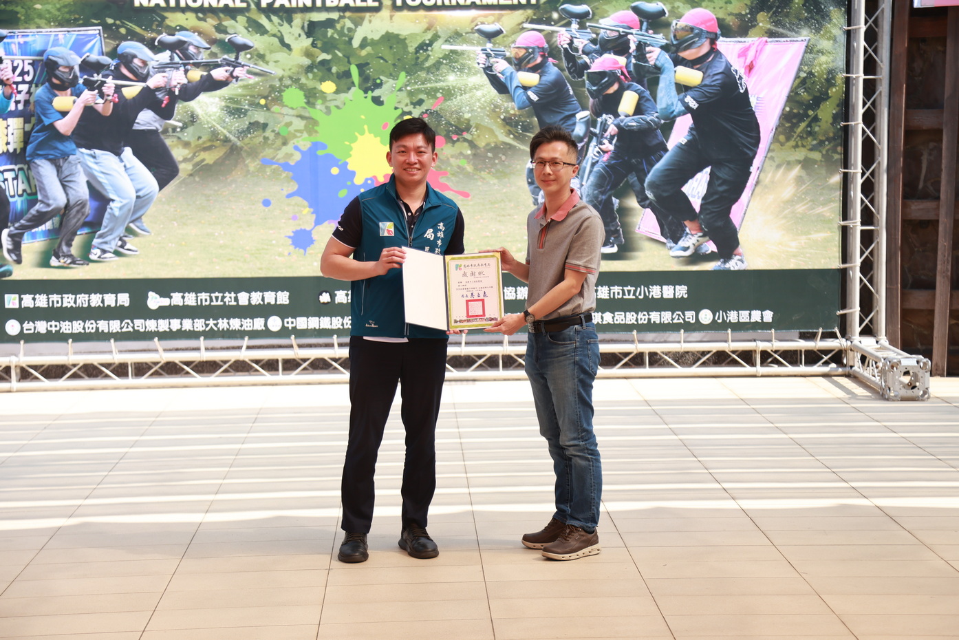 本次賽事特別感謝台灣中油股份有限公司煉製事業部大林煉油廠、中國鋼鐵股份有限公司、台灣國際造船股份有限公司、佳琪食品股份有限公司、小港區農會等在地企業的熱心贊助,以及高雄市立小港醫院的醫療支援,並感謝高雄市漆彈推廣協會、社教館志工及護理人員共同協力,促成活動圓滿完成。
