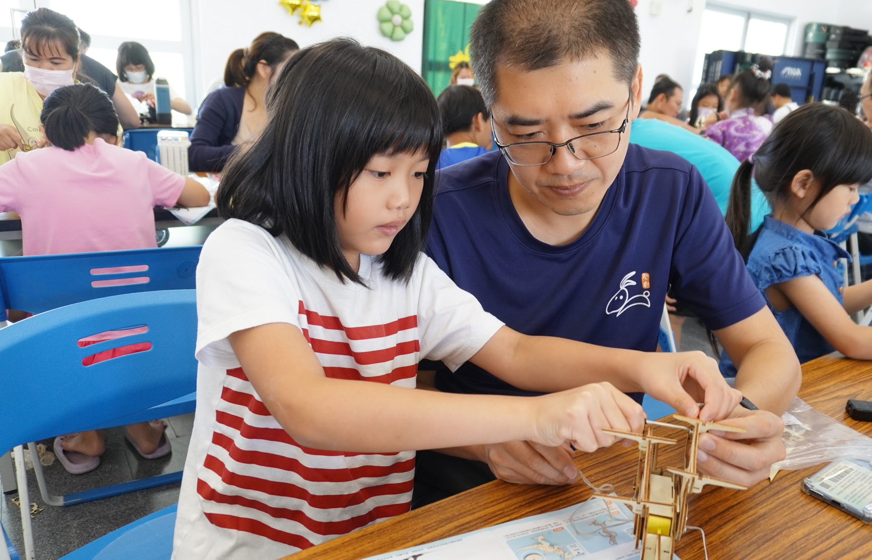 該活動邀請教學經驗豐富的楊元呈老師指導,吸引近百位親子報名參加,透過楊老師以簡單易懂的教具與引導,讓學童與家長一同組裝、操作機器模型,除能激發孩子的創造力與解決問題的能力,並在實際操作過程中提升專注力,運用事先切割好的密底板來組裝成恐龍,在組裝過程中可以培養小朋友的邏輯與空間概念,並訓練手部靈活度及細心度,孩子們不僅能親手打造屬於自己的「霸王龍」,更能透過互動體驗,激發對科技領域的興趣與自信心。