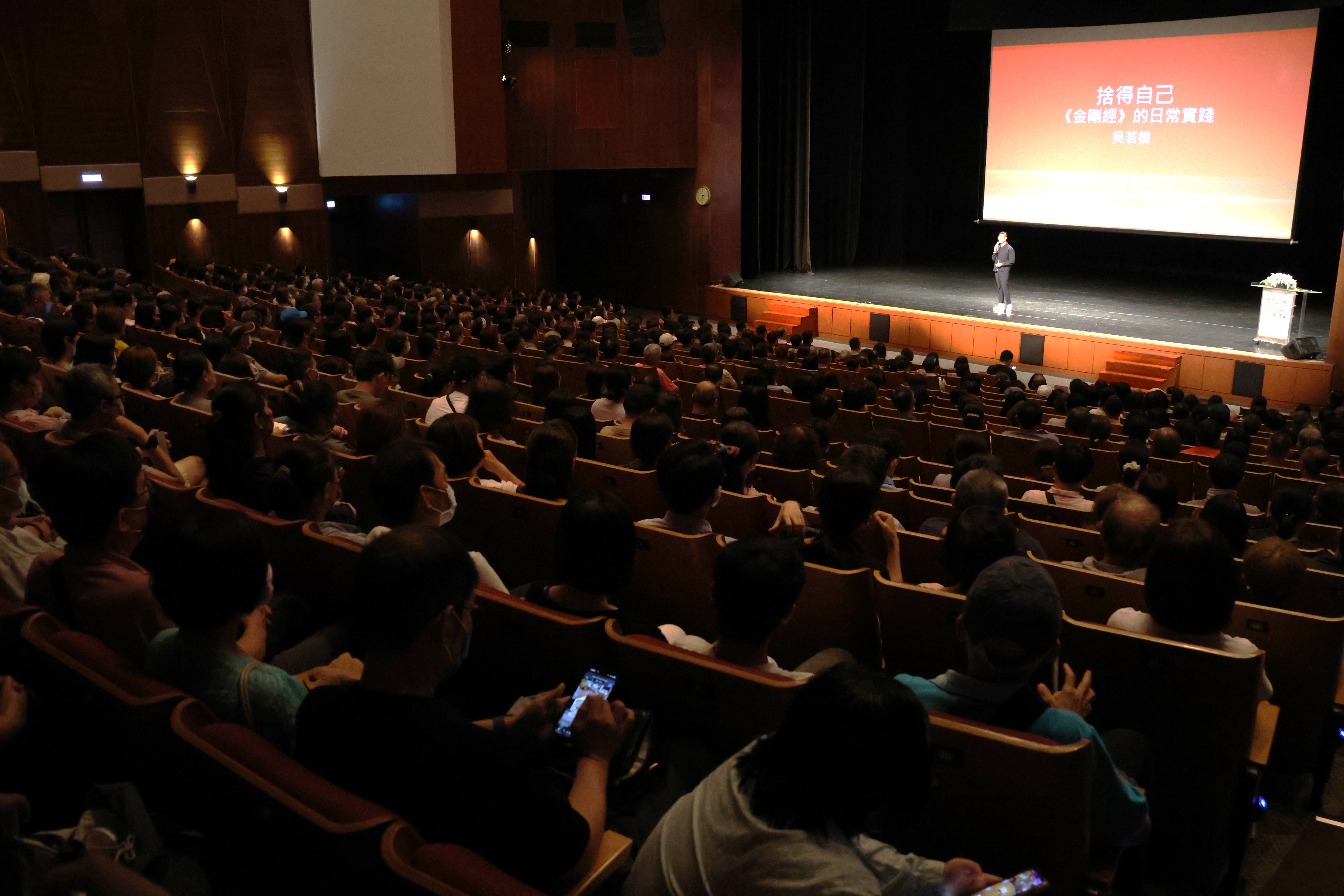 本場講座,座無虛席,吳若權老師以自身及身邊人的故事,由淺入深地詮釋《金剛經》經文中的金句,引導大家從中得到「應無所住,而生其心」的解脫,不再執著於各式各樣的念頭,還給靈魂翱翔的自由。將這部既奧妙又實用的經典,應用於如夢幻泡影的現世,在如露亦如電的虛妄中,學會轉念與放下。
